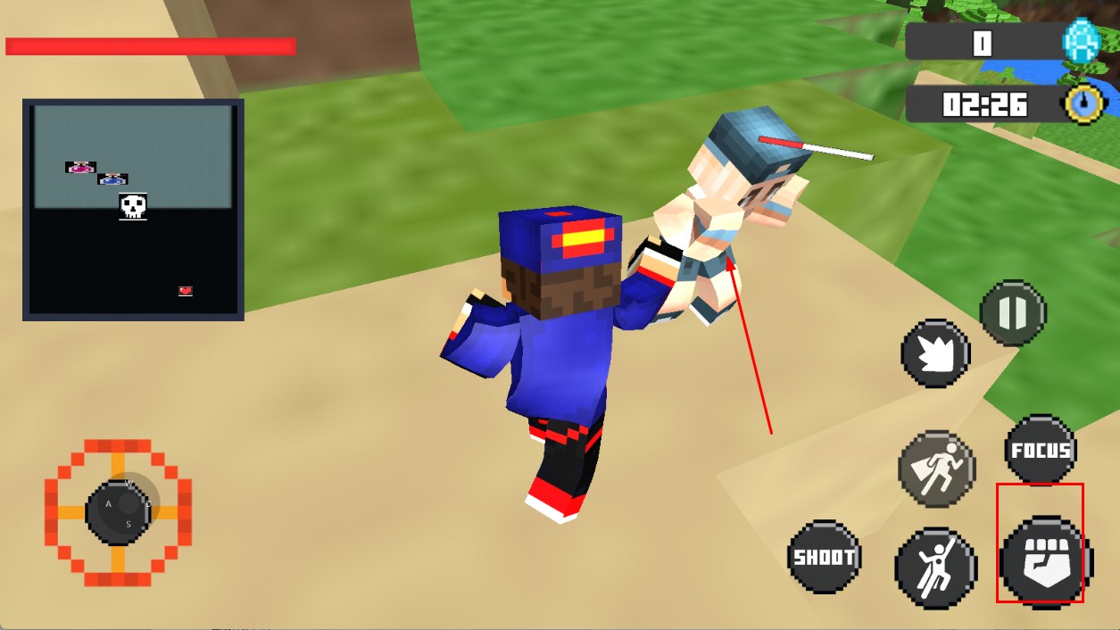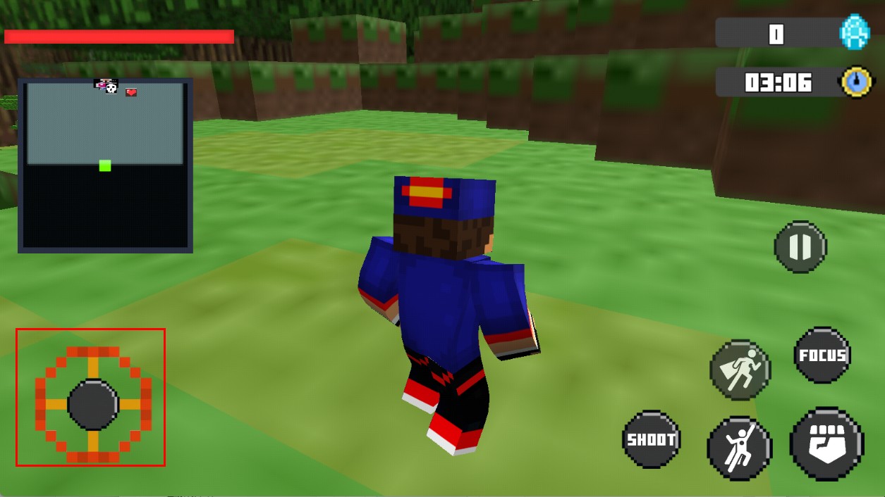 2、用左侧虚拟摇杆,控制角色在场景移动,探索地图,寻找敌人。