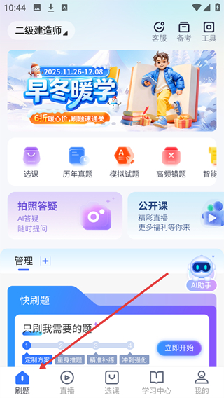 1、在学天教育界面找到【刷题】板块。