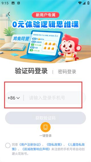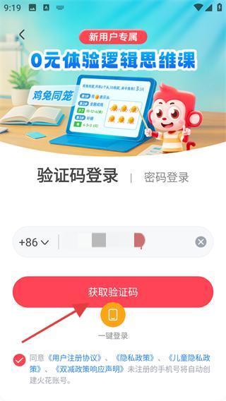 1、在登录页选择【验证码登录】,输入【+86-登录手机号】,准备获取验证码完成注册流程。