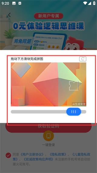 2、勾选同意相关协议后,点击【获取验证码】,触发滑块验证,拖动滑块完成拼图验证。