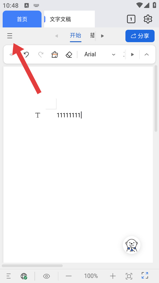 3、编辑完成后,点击文档界面左上角的【三条横线菜单按钮】,打开更多操作选项。