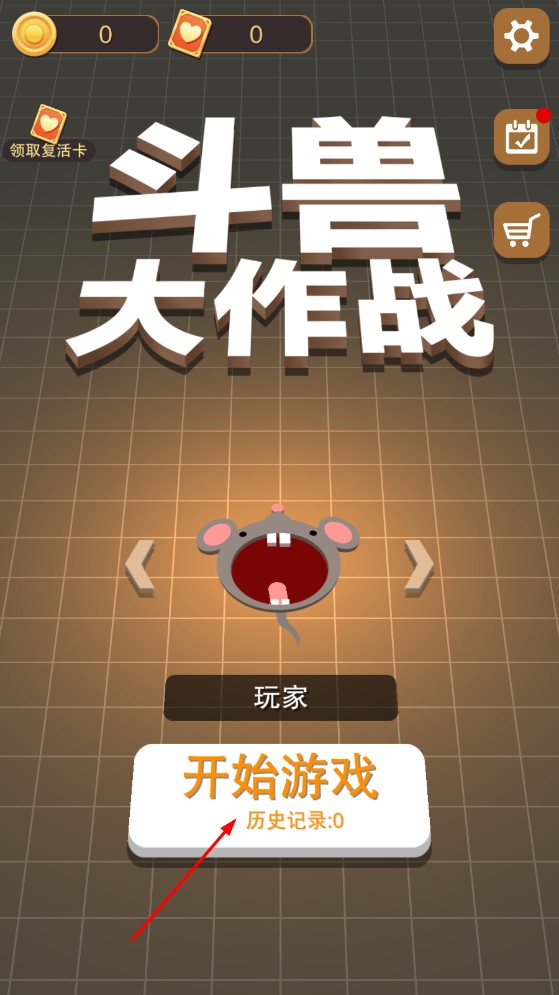 1、点击【开始游戏】按钮,进入《斗兽大作战》游戏,初始角色为老鼠。