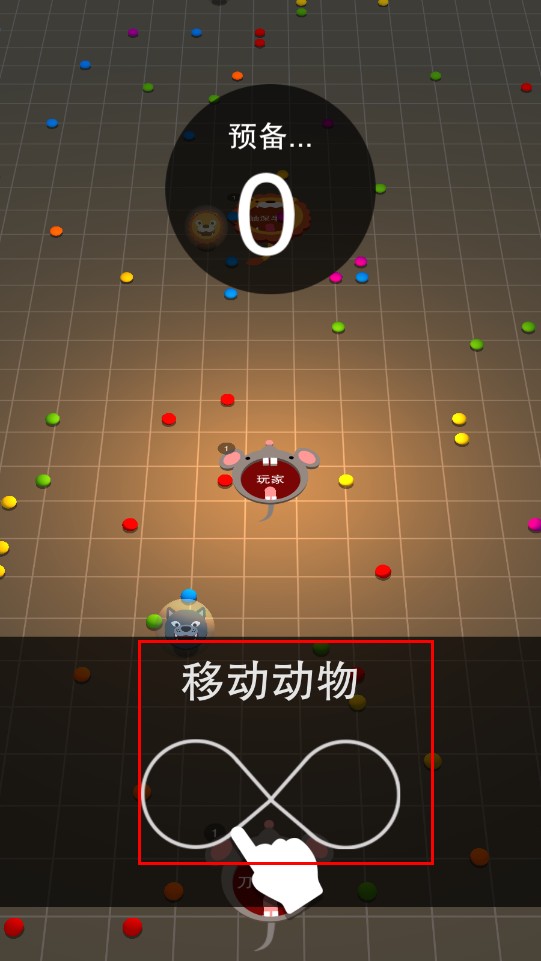 2、游戏预备阶段,按照提示,通过滑动“∞”形轨迹来移动动物角色,准备参与竞技。