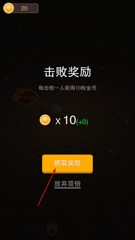 4、每击败一名对手,会弹出“击败奖励”界面,点击【领取奖励】,可获得10枚金币。
