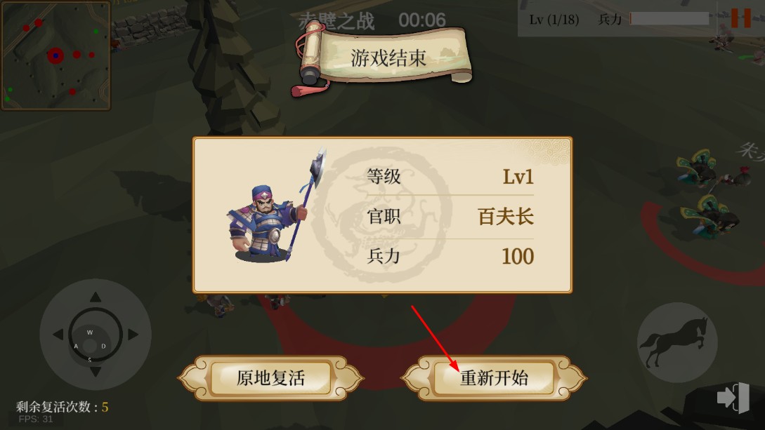 4、游戏结束后,可选择【原地复活】继续当前进程,或点击【重新开始】,开启新一轮游戏。