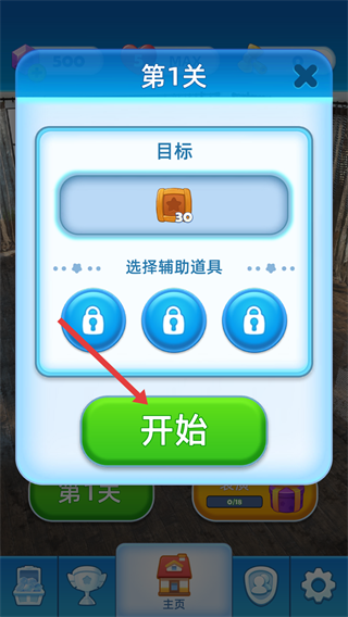 2、在【第1关】界面,点击绿色的【开始】按钮开始游戏。