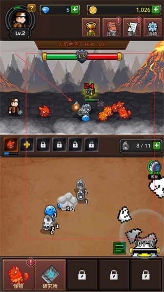 1、可召唤不同等级怪物协同作战,低等级承伤、高等级输出,快速推进关卡,拾取宝箱获资源。