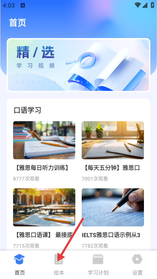 1、打开APP,在底部导航栏点击【绘本】选项,进入绘本页面。