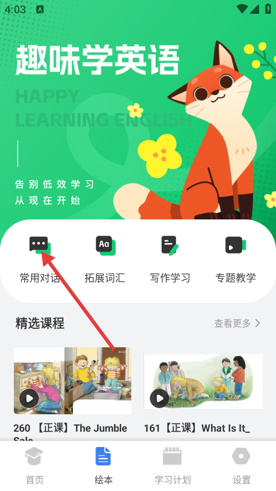 2、在绘本页面,点击【常用对话】板块,进入常用对话分类页。