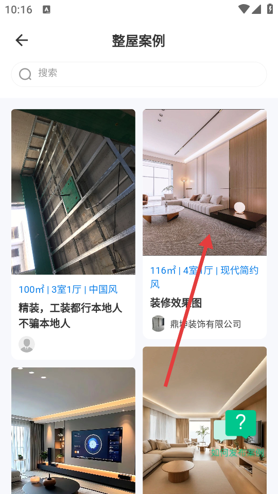 2、在“整屋案例”页面,选择心仪的装修案例,点击进入该案例详情页面。
