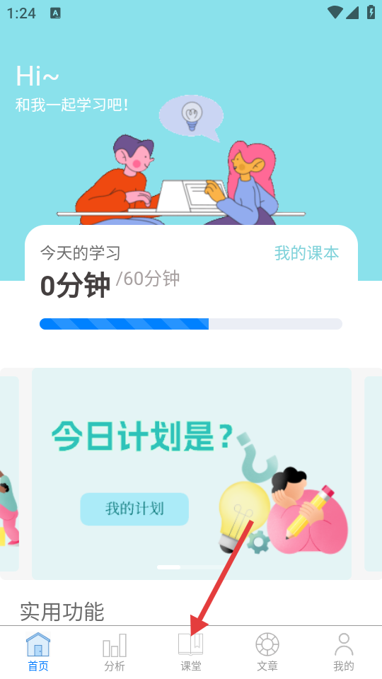 2、在首页,点击底部导航栏的【课堂】,进入“我的课堂”页面。