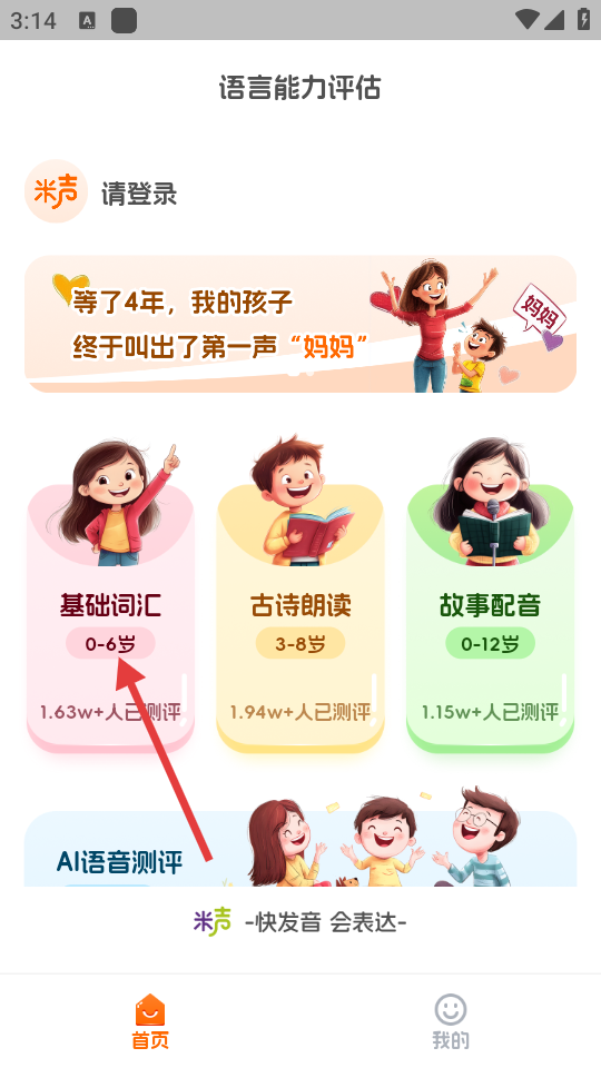 1、在语言能力评估页面,点击【基础词汇-0-6岁】选项。