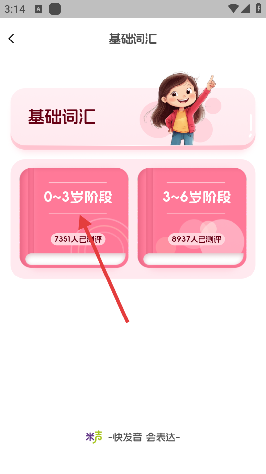 2、进入基础词汇页面后,点击【0~3岁阶段】选项。