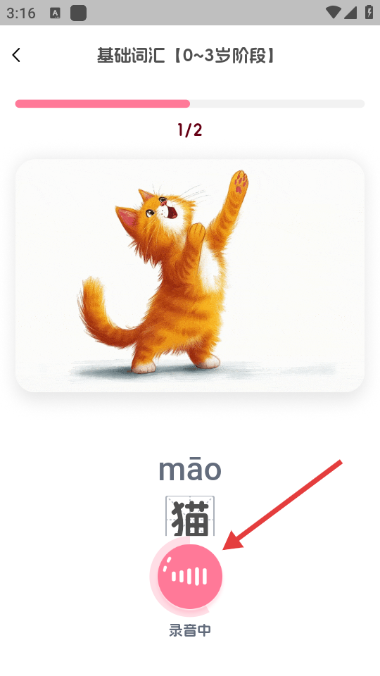 4、进入测评题目页面,点击录音按钮,根据展示的内容进行发音录音。