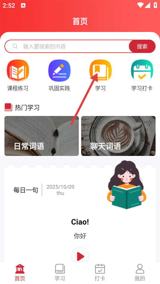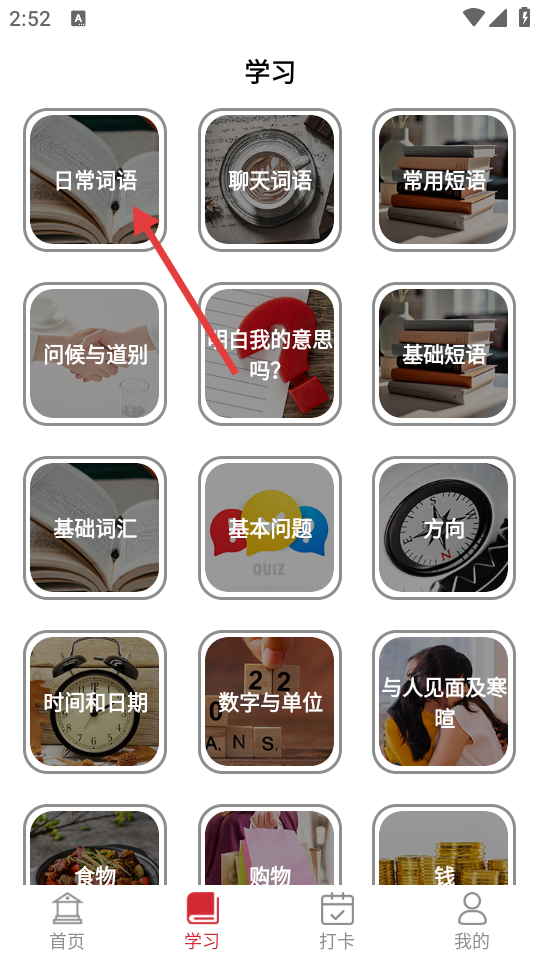 3、在学习页面,点击【日常词语】选项。