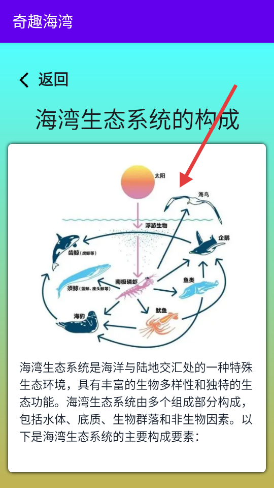 4、进入海湾生态系统的构成详情页面后,即可查看相关内容。