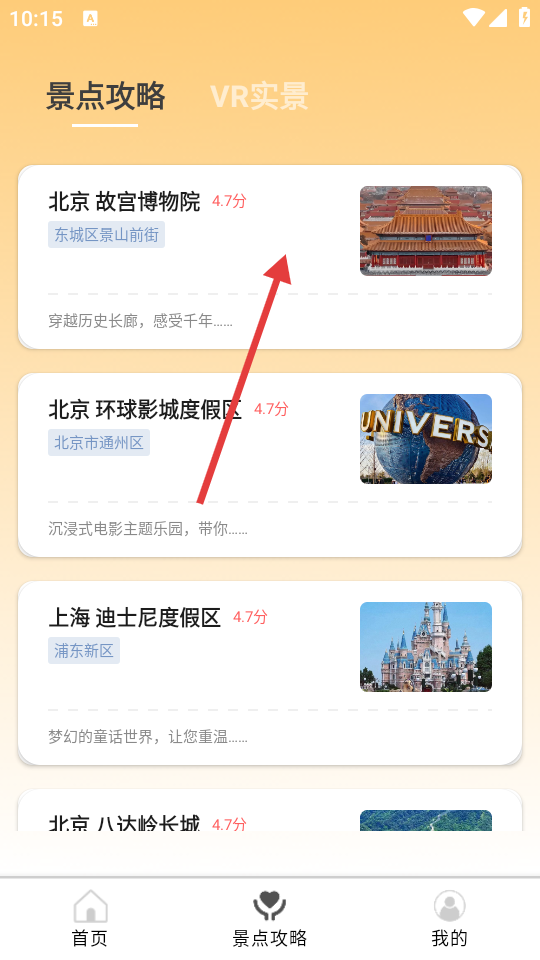 3、在景点攻略页面,选择心仪的景点(如北京故宫博物院)。