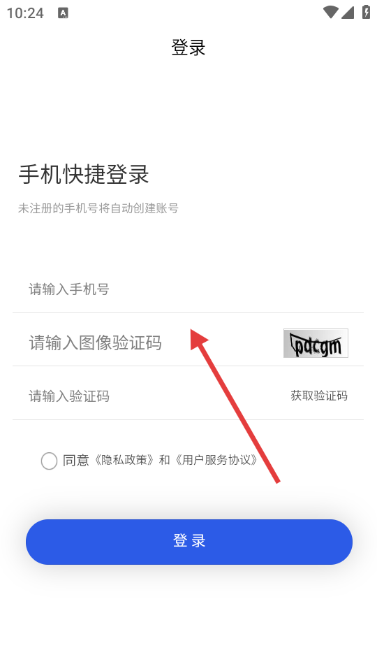 1、在登录页面,输入手机号、图像验证码,获取并输入验证码,勾选同意后,点击【登录】按钮。