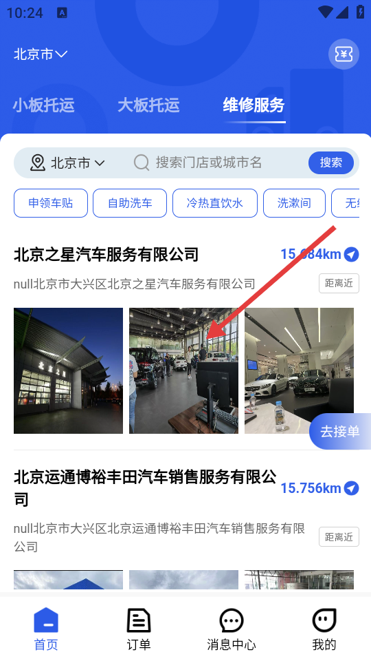 3、在维修服务页面,选择心仪的汽车服务公司(如北京之星汽车服务有限公司)。