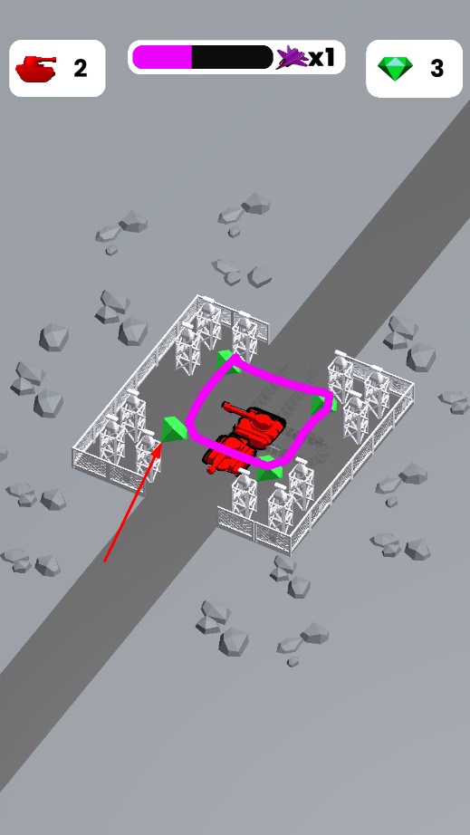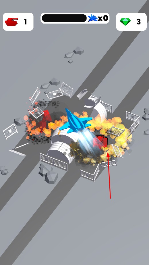 2、利用飞机攻击,摧毁围栏和敌方目标,收集钻石。