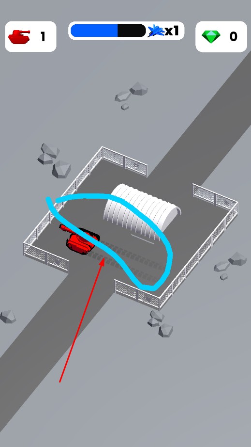 1、操控飞机画出蓝色轨迹移动,摧毁坦克。