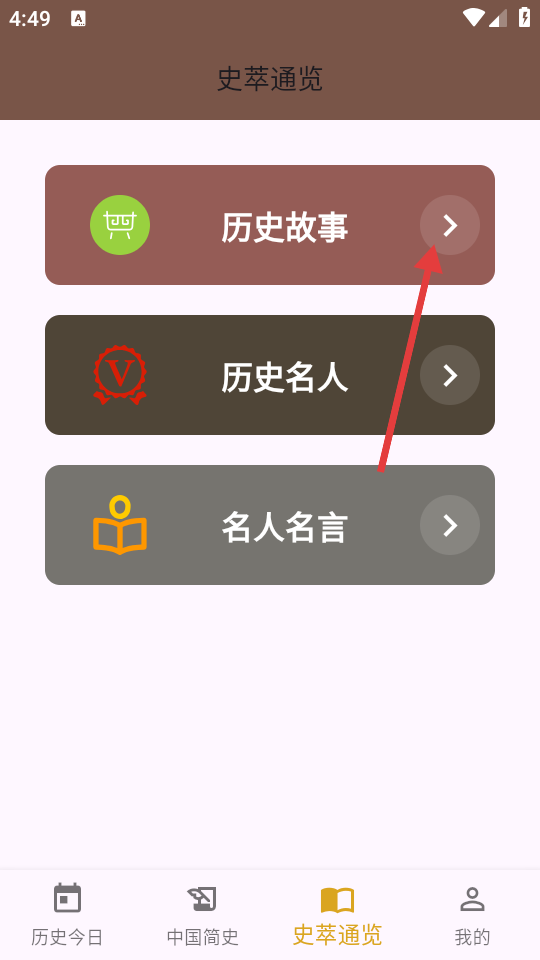 2、进入史萃通览页面后,点击【历史故事】选项。