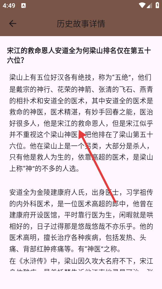 4、进入历史故事详情页面后,即可查看该历史故事的详细内容。