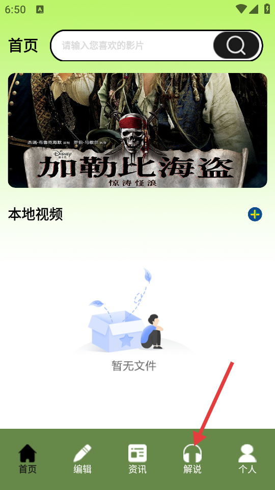 2、进入主页面后,点击底部导航栏中的【解说】选项。