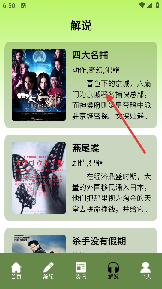 3、在解说页面,选择想要查看的影片(如《四大名捕》)。