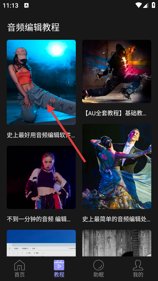 2、在音频编辑教程页面,选择想要学习的教程视频。