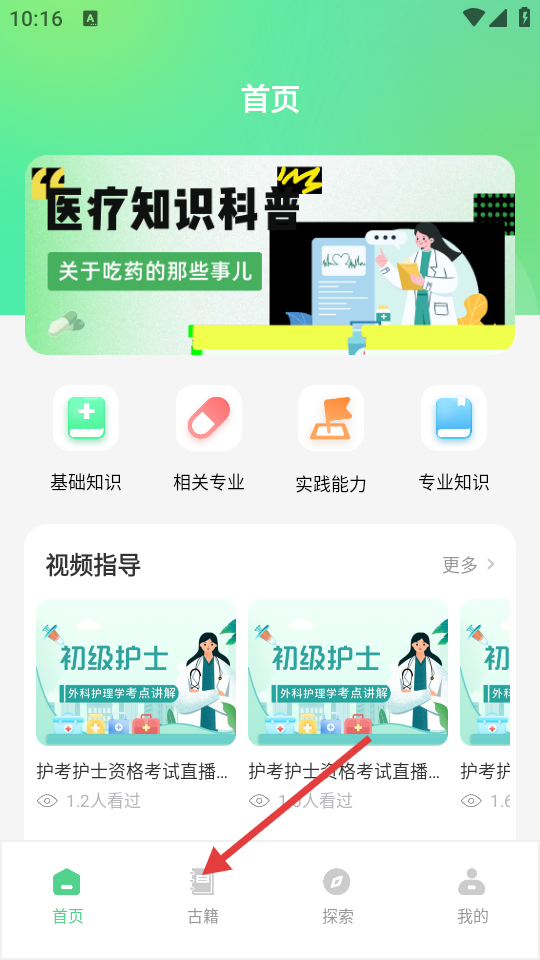 1、打开APP,点击底部【古籍】选项,进入中医古籍页面。