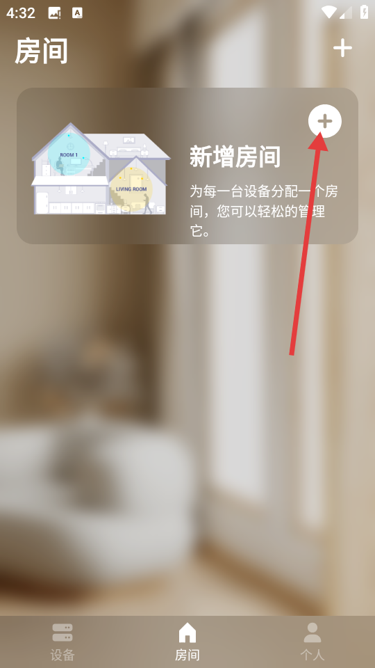 2、在房间管理页面,点击【新增房间】的“+”按钮进入图标选择界面。
