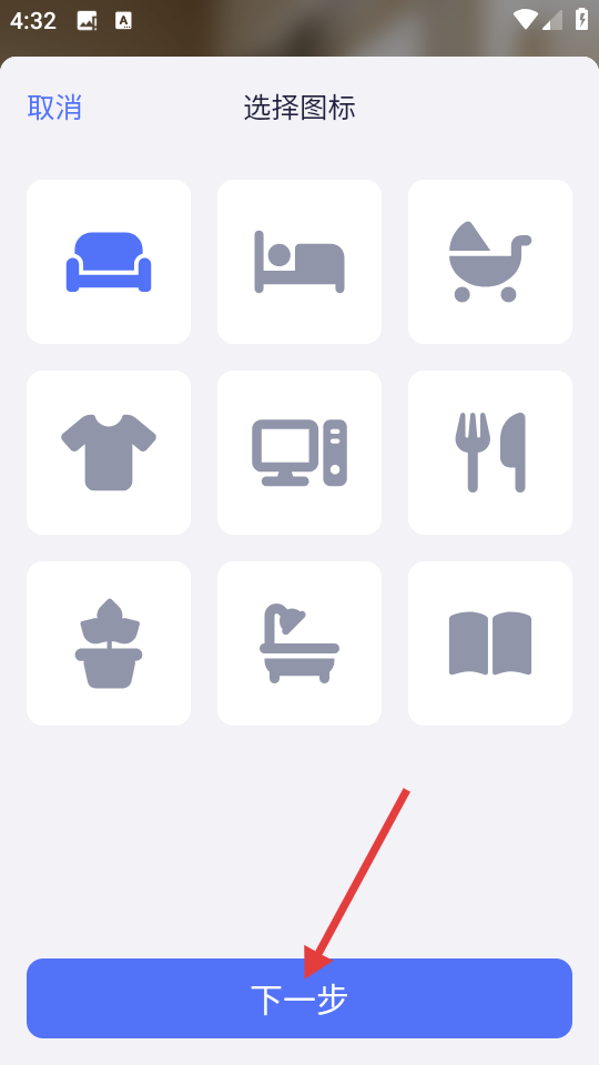 3、在图标选择界面选择房间图标后,点击【下一步】进入房间名称设置页面。