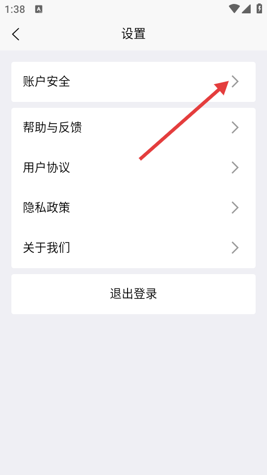 3、在设置页面,点击【账户安全】进入账户安全页面。