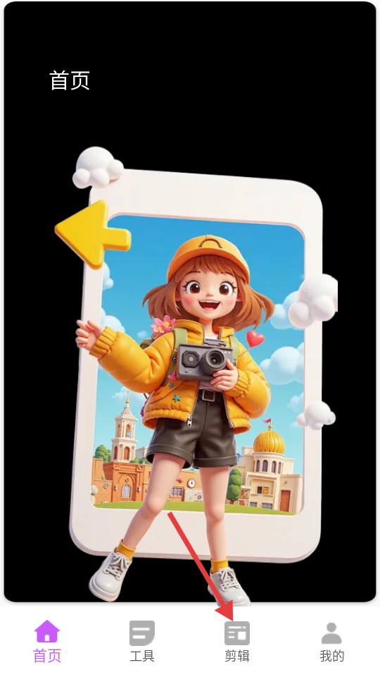 1、在APP底部导航栏,点击【剪辑】进入剪辑功能页面。