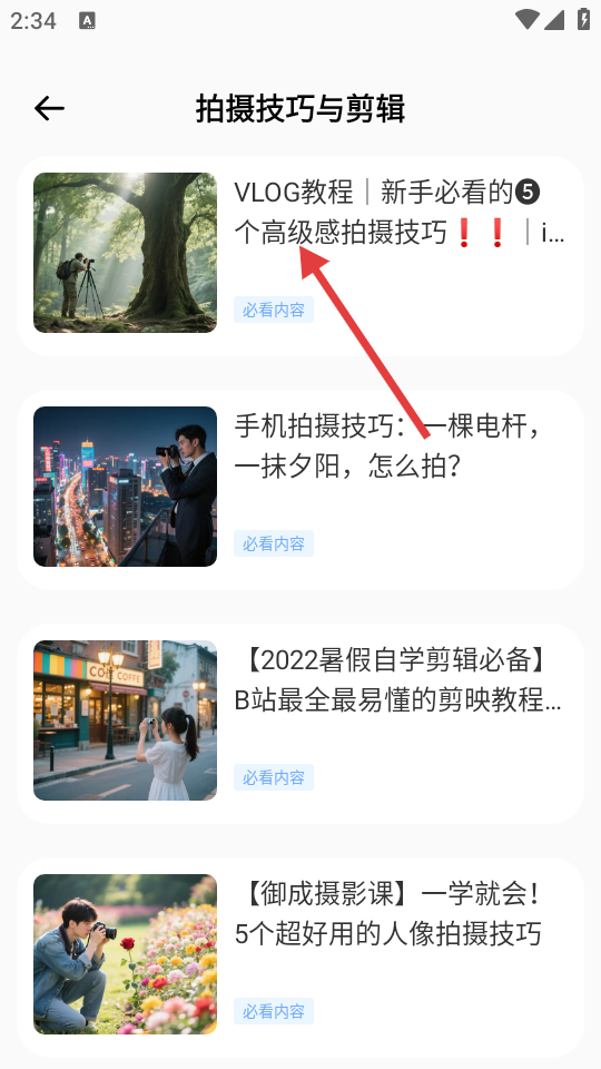 4、在教程详情页,可观看视频内容,学习拍摄与剪辑技巧。