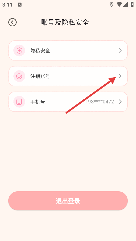 3、在账号及隐私安全页面,点击【注销账号】进入注销账户页面。