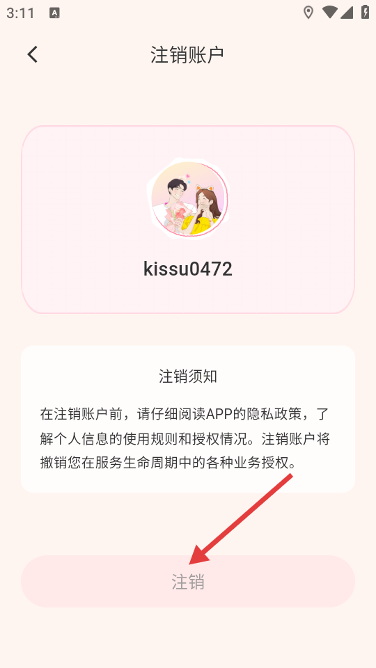 4、在注销账户页面,点击【注销】即可完成账户注销的操作。