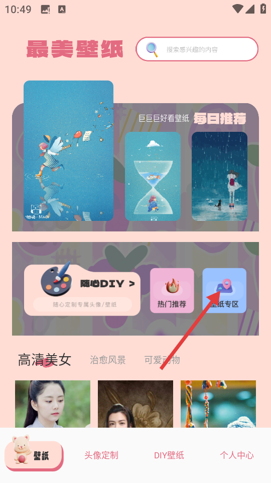1、点击【壁纸专区】按钮,进入壁纸分类页面。