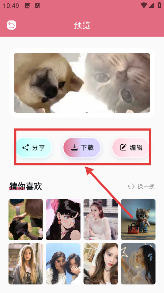 4、在预览页面可选择【分享】【下载】【编辑】等操作,完成对萌宠壁纸的使用。
