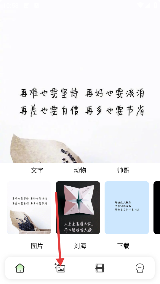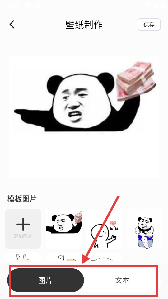 4、在壁纸制作界面,可使用【图片】【文本】等功能,制作个性化壁纸。