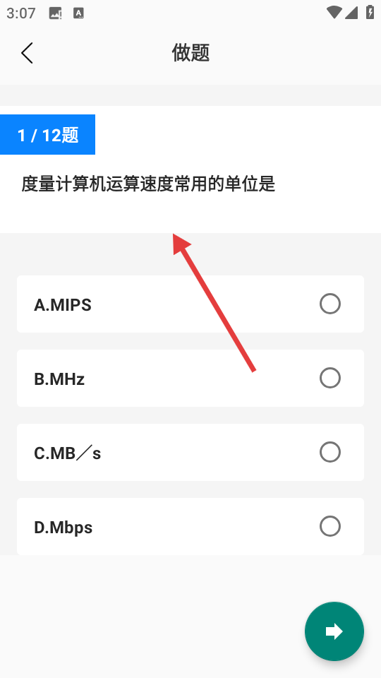 3、在试题集界面选择对应章节后,点击【开始答题】按钮进入答题环节。