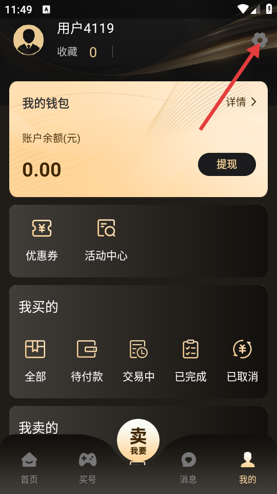 1、在【我的】页面,点击右上角设置图标,可进入设置界面。