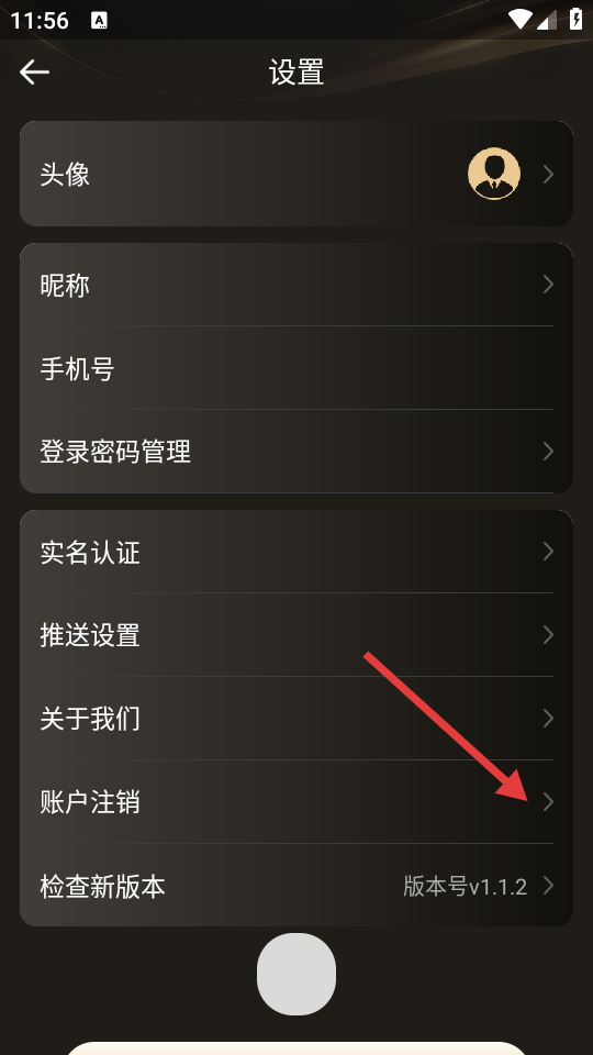 2、在设置界面,点击【账户注销】选项,可进入账户注销条件说明页面。