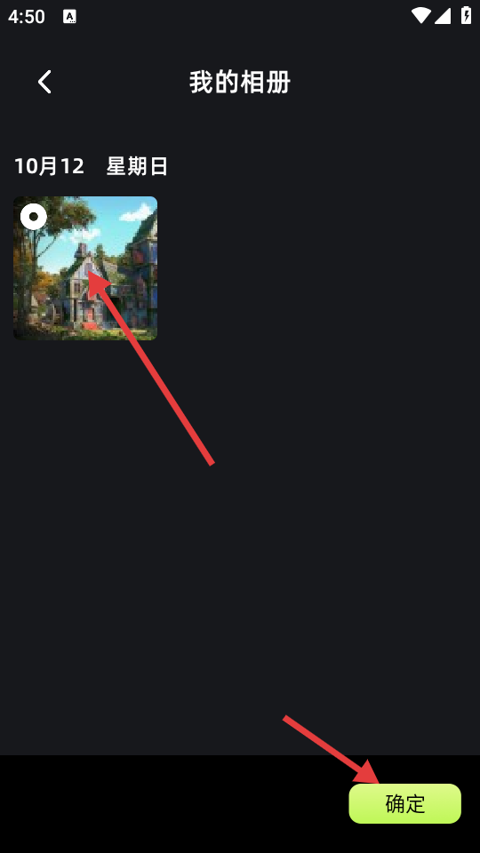 3、在我的相册页面,选择图片后点击【确定】,可进入图片打码编辑页面。
