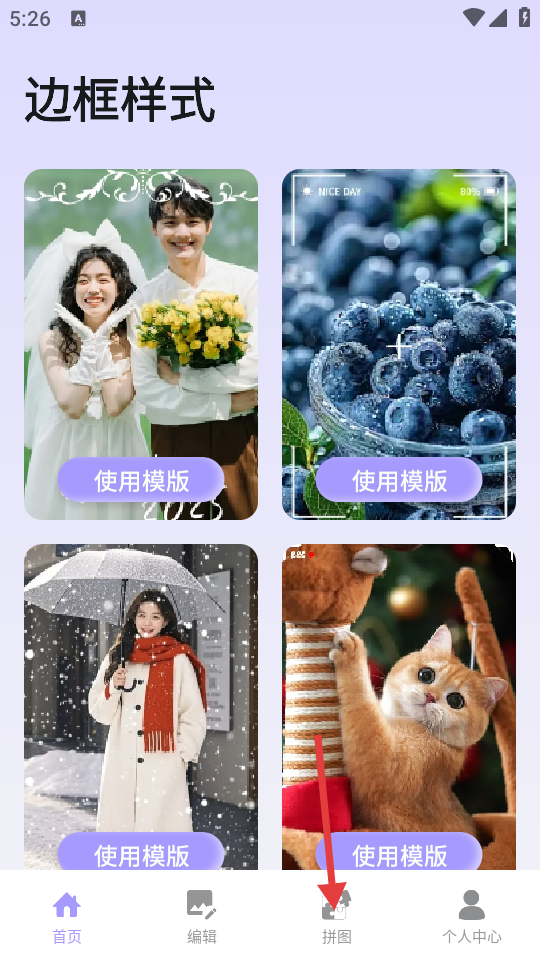 1、点击底部【拼图】,可进入拼图页面。