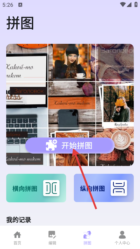 2、在拼图页面,点击【开始拼图】,可进入选择图片页面。