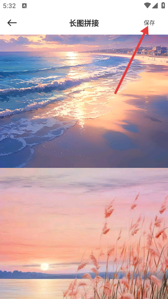 4、在长图拼接页面,点击【保存】,即可完成图片拼接并保存。