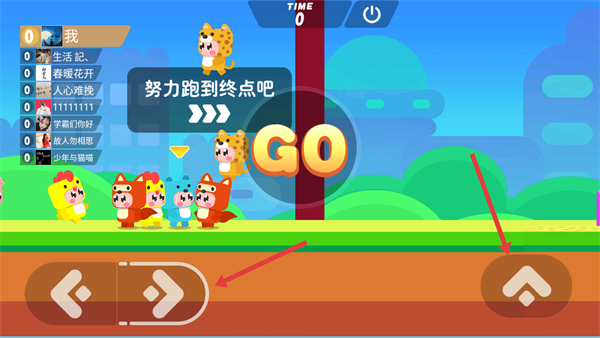 2、看到【努力跑到终点吧】提示后,用左右键控制角色移动,点击【GO】开始跑酷,躲避障碍。