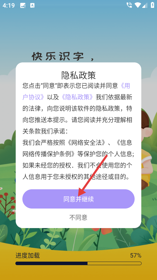 1、在隐私政策提示页,点击【同意并继续】按钮,进入主界面。